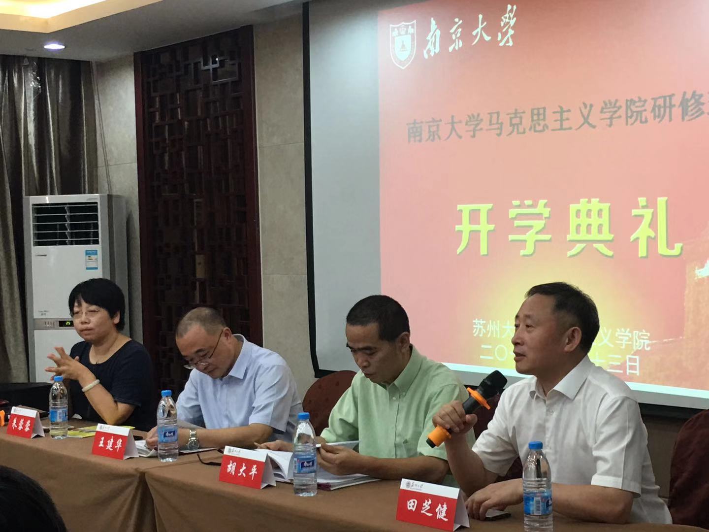 日前,南京大学马克思主义学院院长胡大平教授、党委书记王建华教授率队来到苏州大学全国高校思想政治理论课教师研修基地进行实践研修。胡大平院长、王建华书记,田芝健院长、朱蓉蓉副院长等出席了开班式。活动期间,南京大学马克思主义学院有关领导和老师与苏州大学马克思主义学院同行进行了座谈交流。