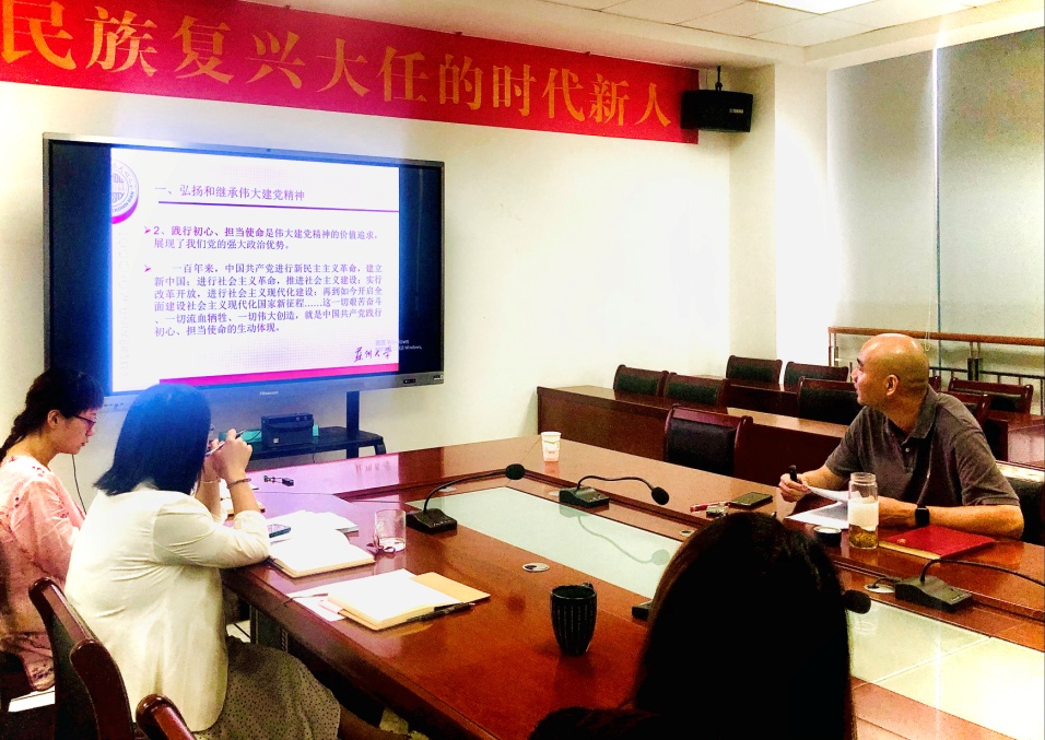 会议第二阶段,茆汉成副院长为行政党支部全体党员讲授了题为“弘扬和继承伟大建党精神 坚持知行合一主动担当作为”的专题党课。