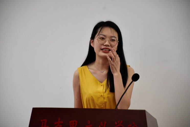 在校研究生代表19博士生杨静向毕业生送上祝福,她说到虽然今年因为疫情导致大家的毕业季多了些许遗憾,但苏大、马院这个大家庭永远欢迎大家常回来看看,与大家欢聚。她回忆了在马院期间,与学长学姐们共同收获的喜悦,也对今日的分别表示不舍。最后,她祝愿各位毕业的学长学姐,无论大家面对的是和风日丽还是艰难险阻,相信大家都能披荆斩棘,乘风破浪,不负热爱,奔赴山海,书写新的华丽篇章,为母校争光,为母院争光。