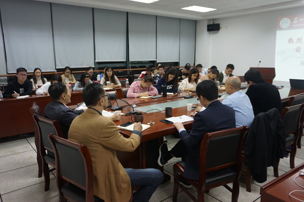 2018年10月18日晚苏州大学马克思主义学院于独墅湖校区606#6418举办了由陈少英教授主讲的《学术论文选题与写作技巧》讲座。马克思主义学院党委书记张才君、马克思主义学院副院长许冠亭、赵龙成老师、潘超老师以及马克思主义学院研究生共30多人聆听了此次讲座。本次讲座由张才君书记主持。