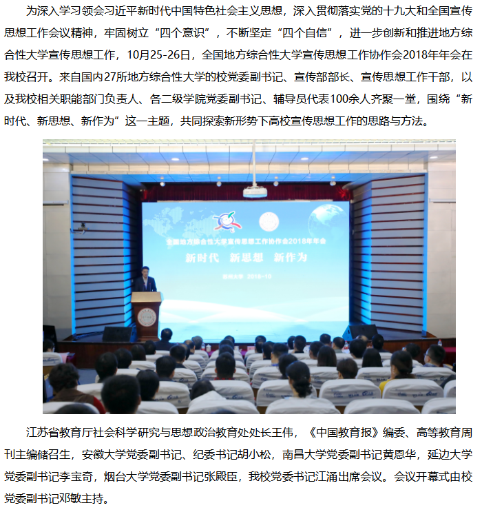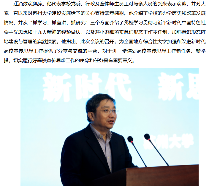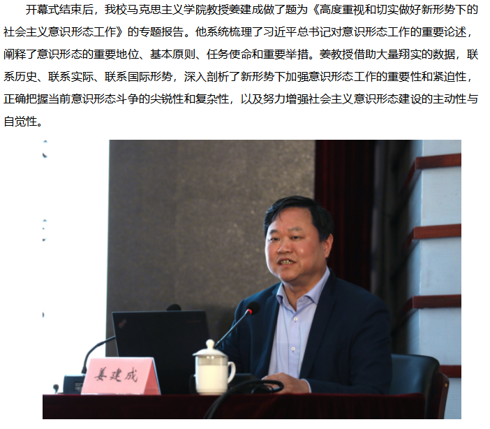 苏州大学马克思主义学院姜建成教授在全国地方综合性大学宣传思想工作协作会2018年年会上做《高度重视和切实做好新形势下的社会主义意识形态工作》专题报告