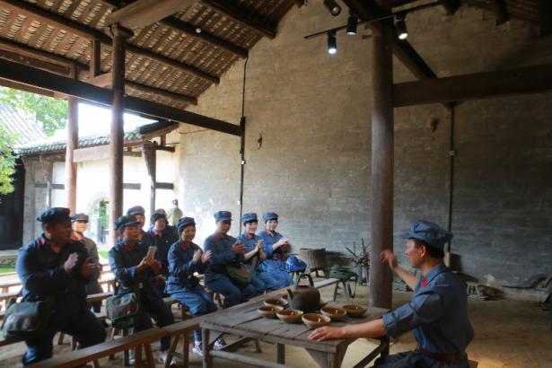 在苏维埃城-汤家汇、苏维埃政府所在地-接善寺、红军医院、少共赤南县委遗址-易氏祠、赤城邮局等革命历史纪念地,老师们近距离了解到鄂豫皖革命根据地初创时期斗争条件之艰苦、党的力量发展之快速以及苏维埃红色政权规模之壮观,对中国共产党领导广大人民进行新民主主义革命斗争的经验和教训有了更为深刻的体验和认识。在红军街的赤城邮局门口,教师们放声歌唱“八月桂花遍地开”——忆峥嵘岁月,激情满怀;展未来宏图,信心倍增。