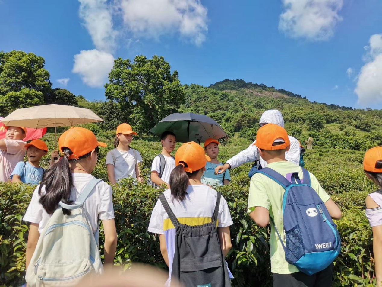 许力凡同学和志愿者们带领青少年学生一起来到桂平市著名的西山,领略西山这一“青山”带给人民的生态效益和经济效益,随后参观了西山茶种植基地,进一步了解桂平依托绿水青山实现发展的成果,西山工作人员向大家介绍道,“西山茶源自西山,以嫩、翠、香、鲜为特色,是绿茶中的上乘佳品,2017年入选中欧地理标志首批互认产品清单,正是因为桂平拥有好山,才能出好水、点好茶。同时,充分利用山林农田优势,发展特色农林畜业,实现山顶培植铁皮石斛、八角、桂皮等名贵中药材,山上种甜糯麻垌荔枝,山下放养本地三黄鸡,门后种稻,形成稻田养鱼的特色农业产业链,帮助农民通过生态农业产业走上在家门口便能脱贫致富之路。”许力凡也向青少年学生们讲述了习近平总书记关于“绿水青山就是金山银山”理念,鼓励大家要保护西山、保护现有的优美生态环境。
