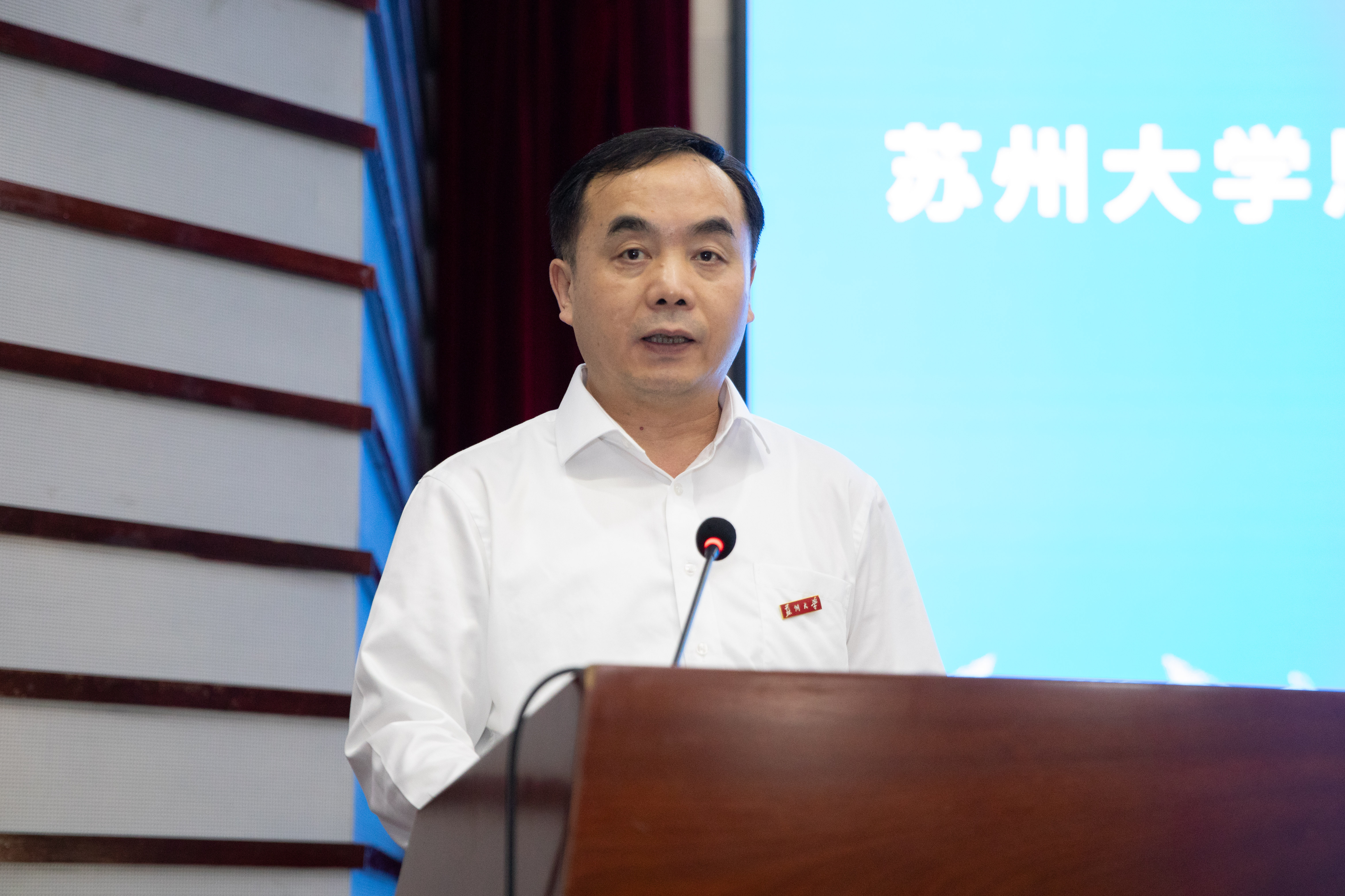 省委宣传部副部长赵金松,省委教育工委副书记、省教育厅党组成员徐子敏,省教育厅社政处副处长邹燕,苏州市委宣传部副部长、苏州市新闻出版局(版权局)局长黄锡明,苏州市委教育工委副书记徐卫等领导出席会议。校领导江涌、熊思东、蒋星红、张晓宏,相关职能部门负责人和部分师生代表参加了会议。会议由校党委副书记邓敏主持。