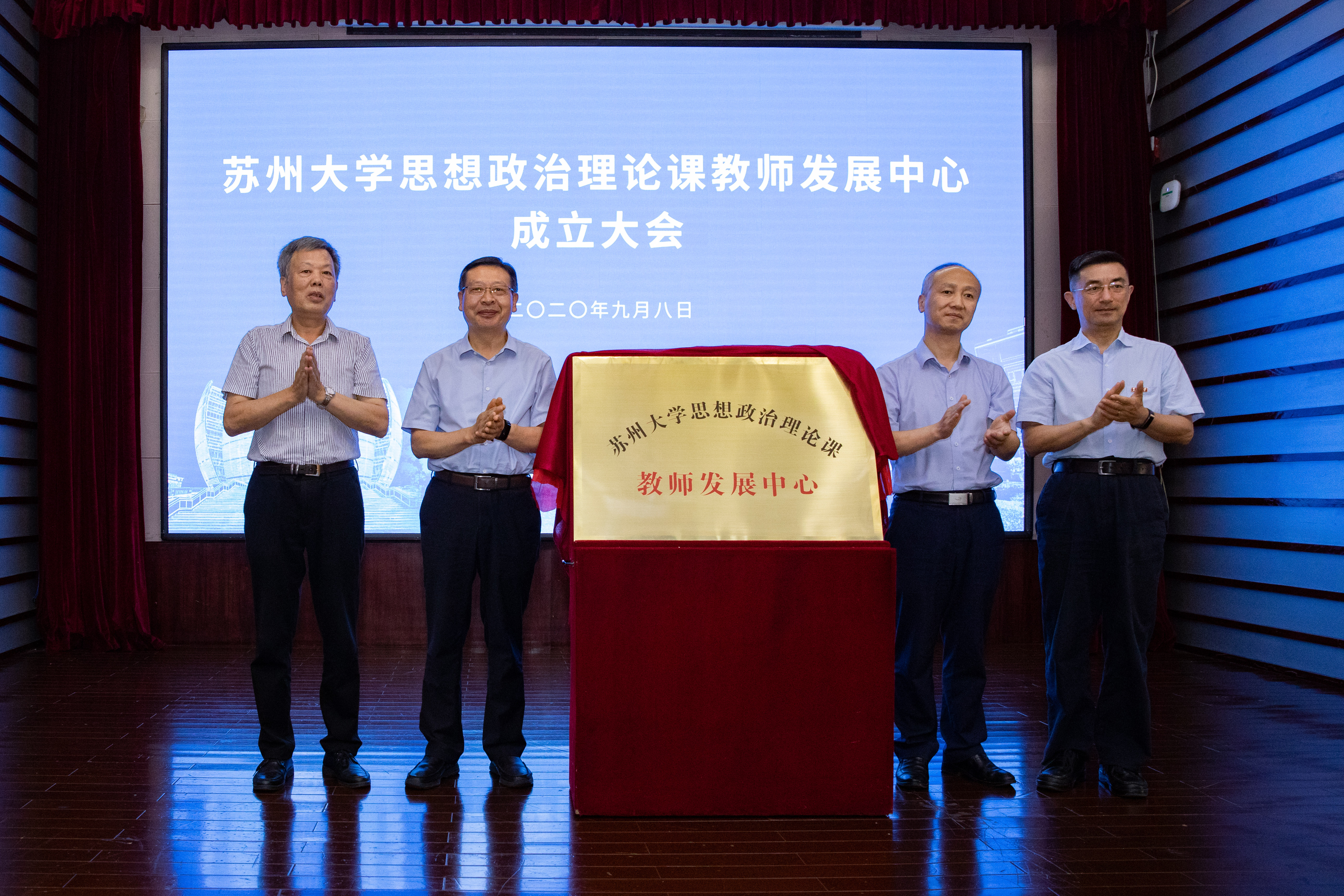 热烈掌声中,省委宣传部副部长赵金松,省委教育工委副书记徐子敏,我校熊思东校长,特聘教授方世南共同为“苏州大学思想政治理论课教师发展中心”揭牌。