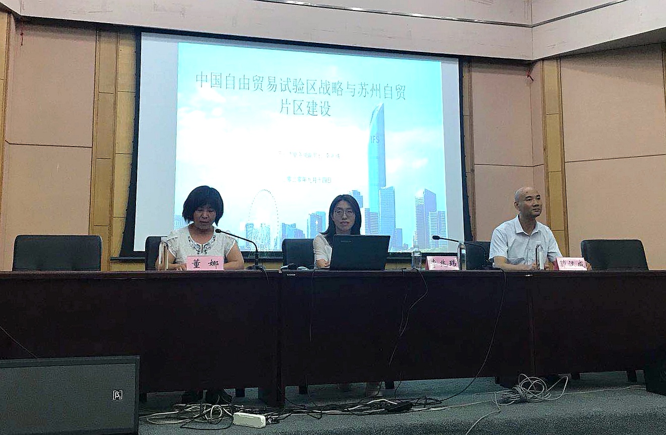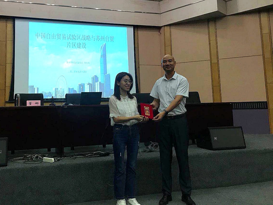 李兆玮在专题讲座中以《我国自贸试验区战略与苏州自贸区建设》为题,通过列举全球著名的四大自由贸易园区引入自由贸易区的基本概念,引导帮助同学们对自贸区形成初步认识。结合我国自贸试验区建设,她以上海自贸区临港新片区为例,指出自贸试验区作为制度创新的重要成果,对我国自贸试验区战略起到了非常大的促进作用。她在讲座中详细阐述了自由贸易区的核心、功能、任务与使命,使同学们更加深刻理解了自贸区的内涵。在深化改革的时代背景下,中国自贸区发展开始探索区域联动,力求通过先行先试、下放特色改革领域相关管理权限等措施构建自贸片区联动合作机制,加强重点改革领域的融合协同,开展差异化特色化改革探索。