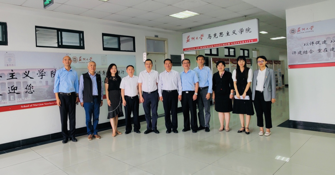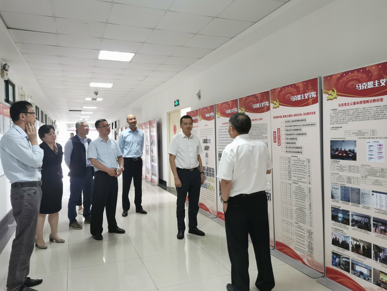 仪式结束后,田芝健院长向农发集团一行介绍了苏州大学马克思主义学院建设成果展,农发集团俞颂家书记等对马院师生志愿者抗疫事迹、思想政治理论课教学改革、推进鲜活实践案例进思政课堂的创新实践活动、马克思主义学院“三集一创”“三能一体”“提质增效”的教学改革机制和人才培养创新给予充分肯定。