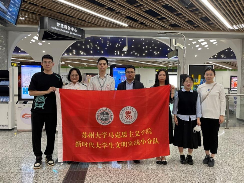 为深入学习习近平新时代中国特色社会主义思想、贯彻党的二十大精神,拓宽基层党建工作新视野,近日,苏州大学马克思主义学院“百名学子看百企”实践团队赴苏州轨道集团运营一分公司东方之门区域站、乐桥区域站开展专题调研。苏州大学马克思主义学院习近平新时代中国特色社会主义思想概论教研室主任吉启卫及实践团队成员王雪、韩轶、张亚静等参加此次活动。苏州轨道集团运营一分公司党群人事部朱佳卉、俞邢陪同调研。