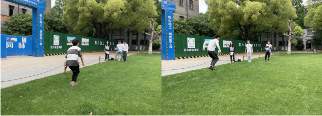 在趣味运动活动环节,同学们通力合作,往返运动场大草坪,进行兔子跳,接力完成比赛。在比赛过程中,同学们通过不断地调整磨合最终都成功完成本轮挑战。