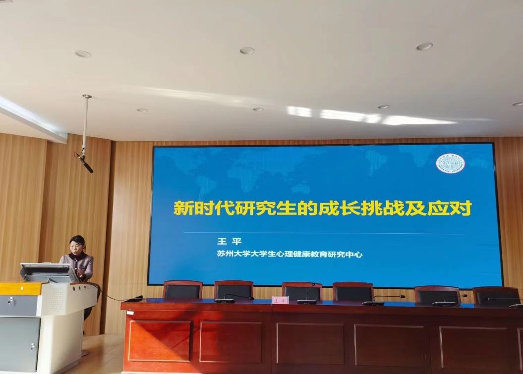 11月26日,苏州大学大学生心理健康教育研究中心王平老师应邀到苏州大学独墅湖校区606幢6403会议室为马院学子作题为“研究生心理成长与挑战应对”的心理教育讲座。本次活动由马克思主义学院主办,院研究生党支部、院研究生会、思想政治教育研究会承办。讲座由2021级硕士研究生王晗于主持。