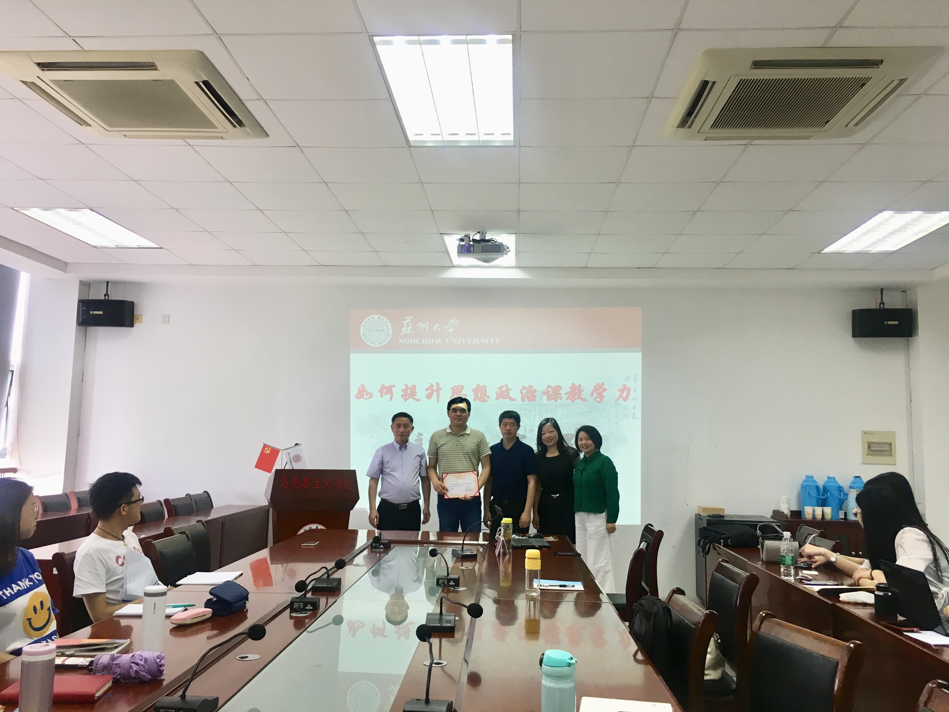 6月21日下午,苏州工业园区教师发展中心政治学科、德育和心理健康教育教研员宋大男应邀于独墅湖校区606#6418会议室为马克思主义学院师生做主题为“如何提升思想政治课教学力”的学术讲座。马克思主义学院院长田芝健,副院长许冠亭,教师陈枢卉、李艳秋以及部分在读硕士生参加了此次讲座。
