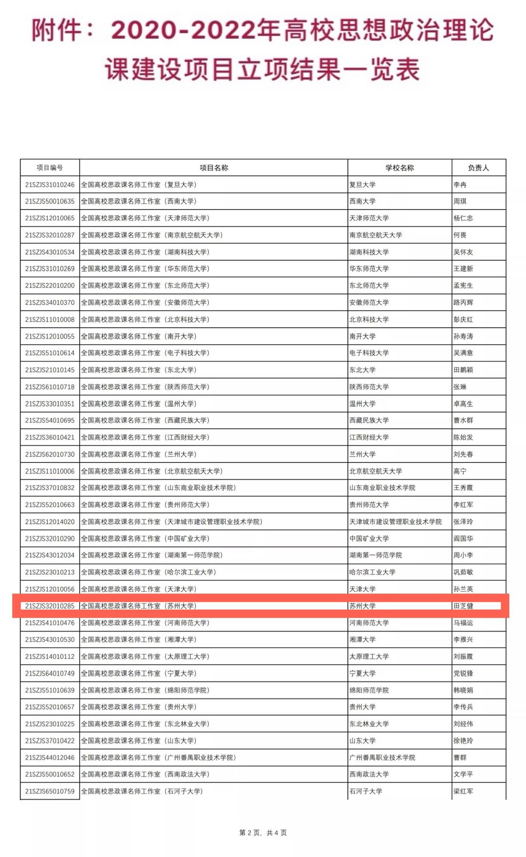 12月1日,教育部社会科学司发布了《关于2020-2022年高校思想政治理论课建设项目立项的通知》,我院田芝健教授负责的“思政田园”名师工作室入选“全国高校思政名师工作室”,这是苏州大学首个思想政治理论课建设项目入选全国高校思政课名师工作室。