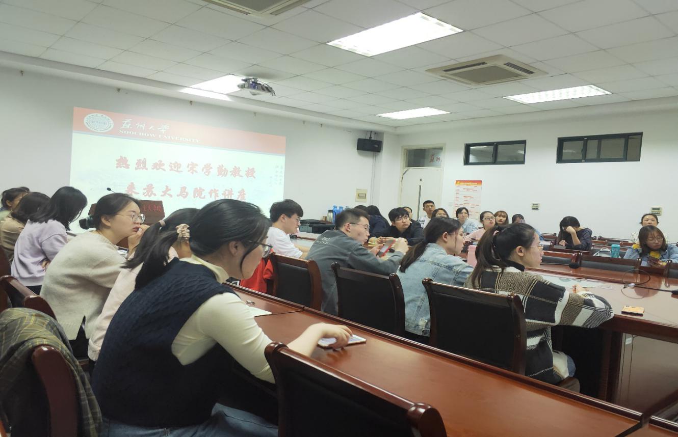 10月17日19点,中国人民大学马克思主义学院副院长、博士生导师宋学勤教授应邀为苏州大学马克思主义学院研究生作“中国共产党社会思想的产生和发展”在线讲座。本次活动由马克思主义学院主办,院团委、研究生党支部、研究生会承办,活动采取线上腾讯会议分散与集中听讲相结合的方式进行。讲座由田芝健院长主持。