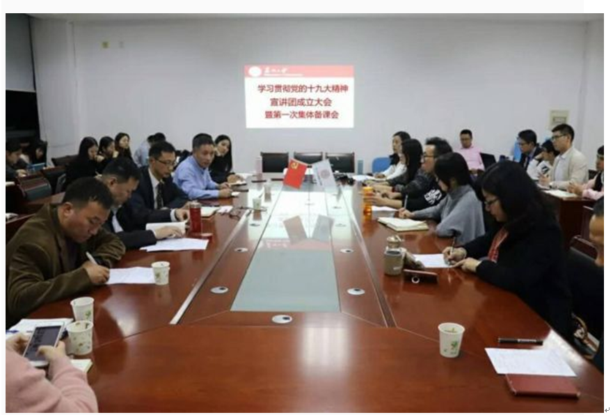 图为党支部“学习贯彻党的十九大精神宣讲团成立大会暨第一次集体备课会”