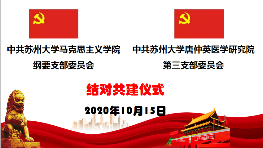 苏州大学马克思主义学院党委纲要党支部与苏州大学唐仲英医学研究院党委第三党支部举行结对共建签约仪式