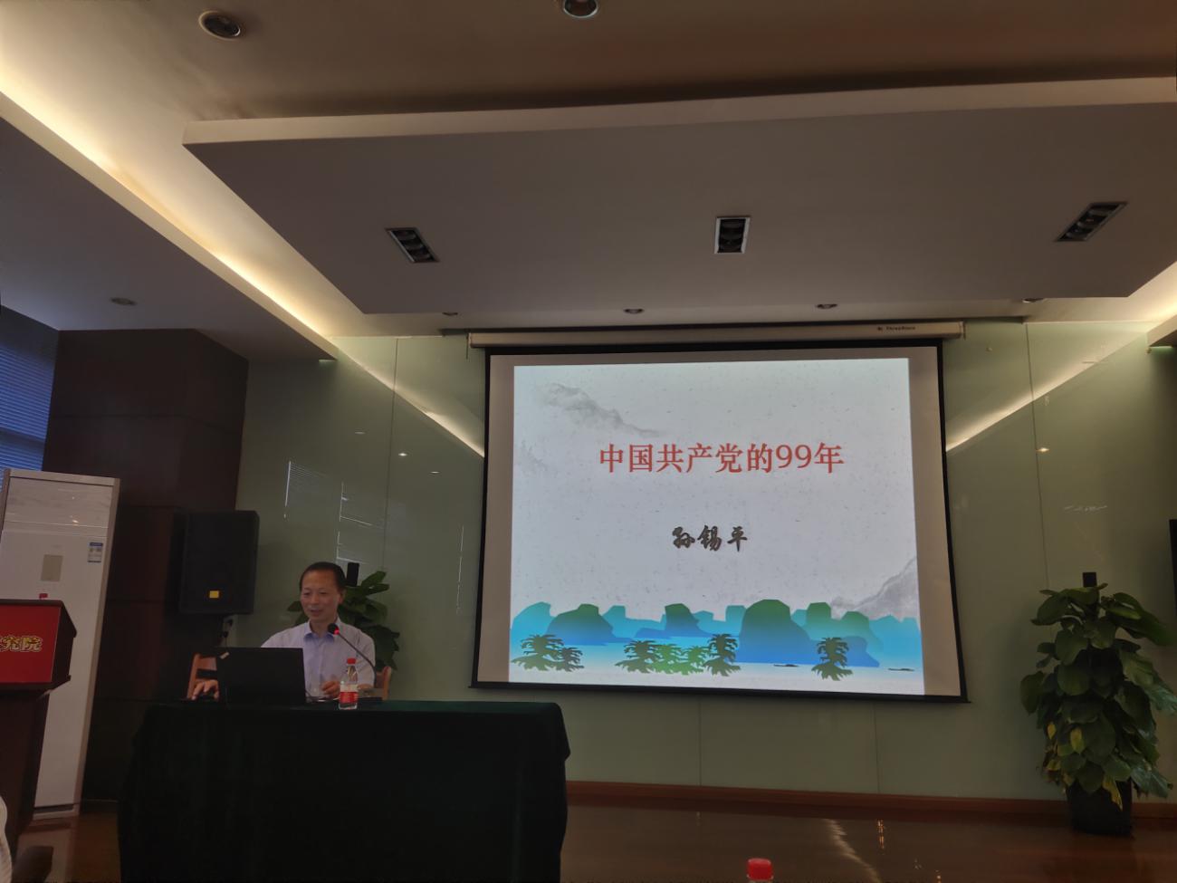 作为结对共建第一场活动,马克思主义学院纲要教研室孙锡平主任为唐仲英医学研究院全体党员做了题为《中国共产党的99年》的中共党史讲座,得到党员同志们的高度肯定和热切赞许。孙锡平老师采用史论结合的方法,生动地讲述了中国共产党在99年的奋斗中领导中国人民进行革命、建设、改革的辉煌历史和巨大成就,从而强调“没有共产党就没有新中国,只有社会主义才能救中国,只有中国特色社会主义才能发展中国”。
