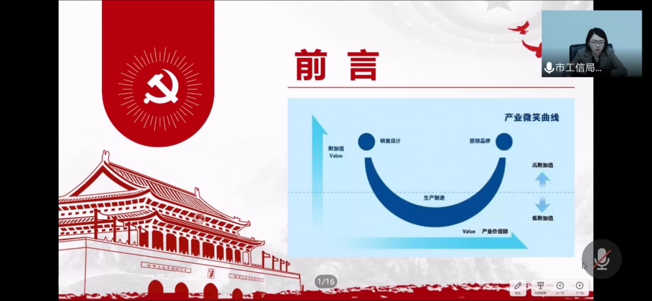 2021年12月10日下午,苏州大学形势与政策大讲堂暨苏州市百名局长“进思政课堂”百场宣讲活动在腾讯会议平台举行。这是苏州大学思政课实践教学改革的创新探索。苏州市工业和信息化局副局长惠艳烂以“铭记光辉历史 践行初心使命 推动产业链向‘微笑曲线’两端延伸”为题做形势政策课,计算机学院党委副书记沈云彩、新生辅导员仇馨玥、马克思主义学院院长助理、副教授孔川,2021级全体本科生在网络视频上聆听了讲座。讲座由仇馨玥主持。