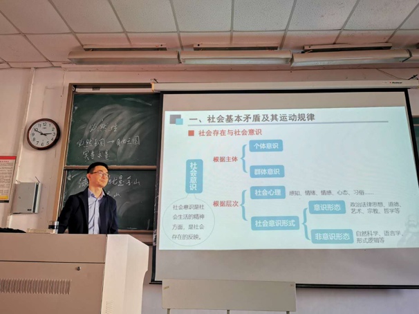 张晓老师就《马克思主义基本原理概论》教材第三章第一节内容开设公开课,重点围绕“社会存在与社会意识”主题展开授课。在课堂上,张老师深入浅出,以准确的表达、清晰的逻辑、生动的案例,为同学们介绍了相关原理,引导学生积极思考、讨论。课堂氛围活跃、有序,取得了理想的教学效果。