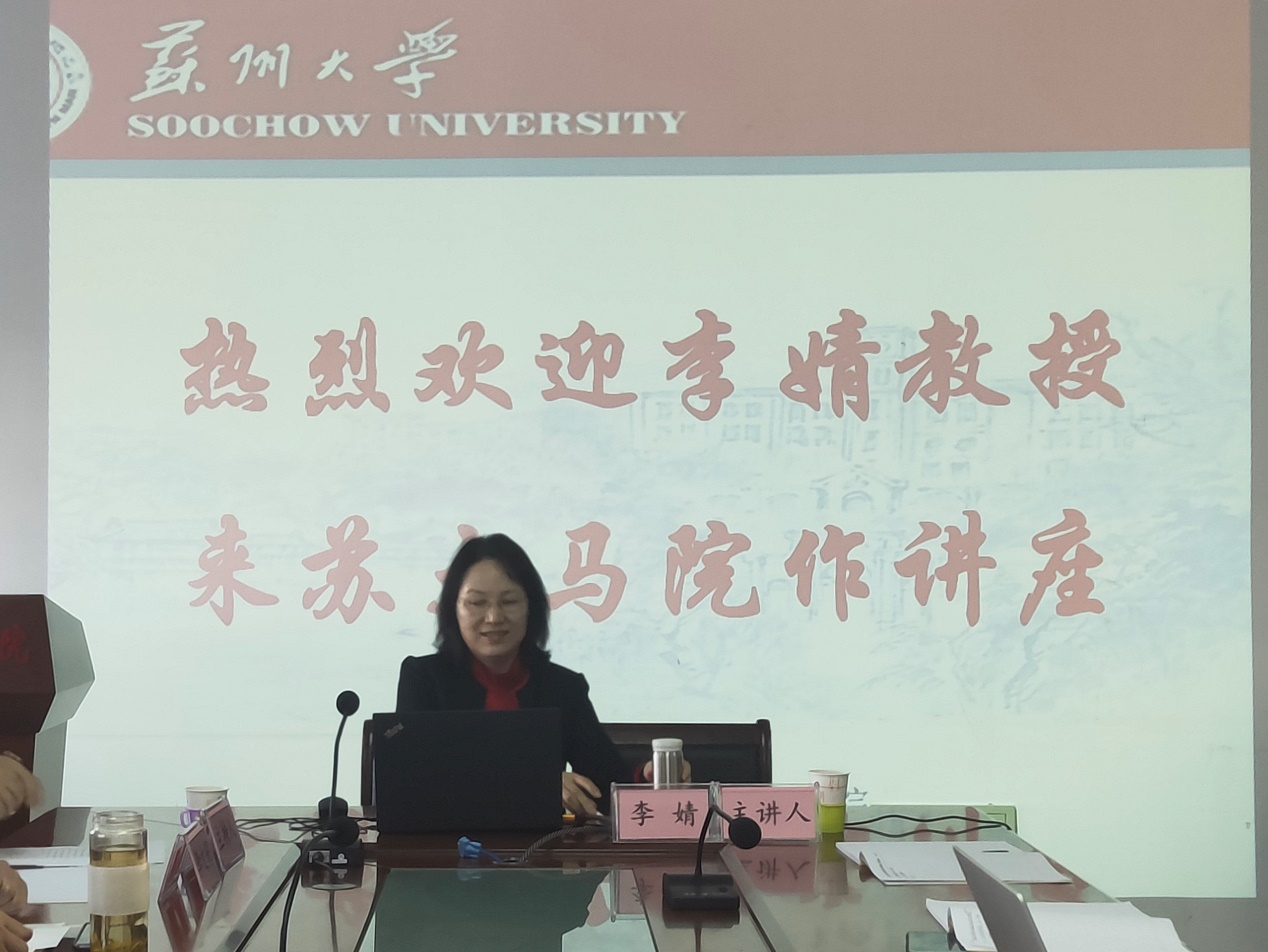 11月5日,东北师范大学李婧教授应邀到苏州大学独墅湖校区606-6418会议室为苏州大学马克思主义学院研究生作“全面依法治国必须正确认识和处理的几个重大关系”的学术讲座。苏州大学马克思主义学院副院长朱蓉蓉教授、副院长茆汉成、教师代表王淼教授以及2020级硕士研究生参与了本次活动。活动由马克思主义学院主办,院团委、研究生党支部、研究生会、思想政治教育研究会承办,讲座由李文娟老师主持。