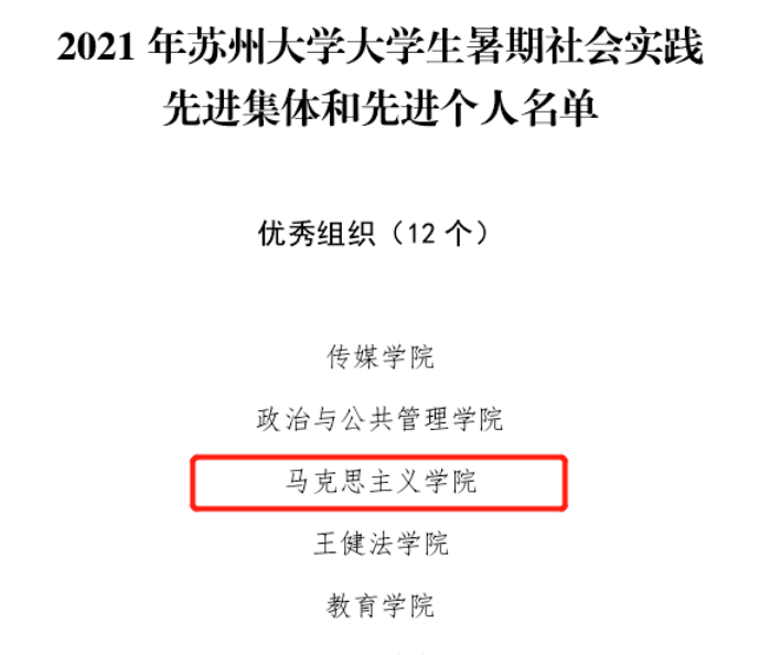 苏州大学马克思主义学院在2021年度暑期社会实践活动中喜获佳绩