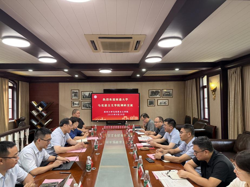 为深化院际交流合作,扎实推进“十五五”规划编制工作,2025年9月26日,由南通大学马克思主义学院院长吴延溢带队,副院长张卫海、唐庆鹏等一行来苏大马院调研交流。苏州大学马克思主义学院院长孙建华,副院长朱蓉蓉,学科办主任张晓、教研室主任顾宏松、吉启卫等参加活动。活动由孙建华主持。