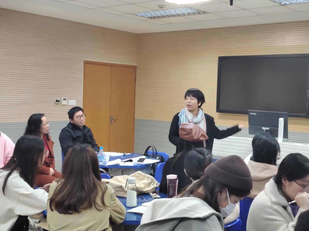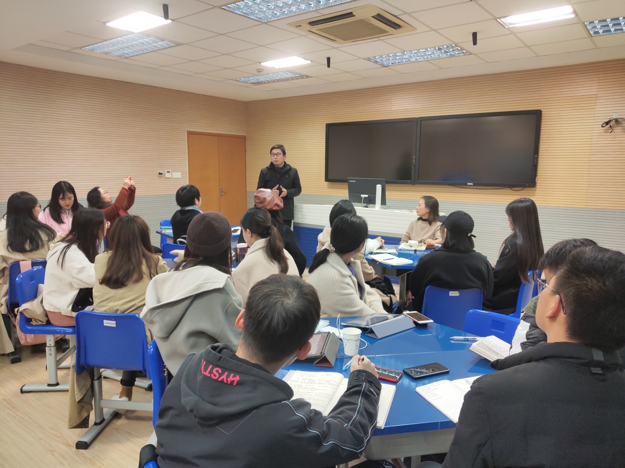 在反思交流环节,张斌老师从四个原则给出反思指导:一是牢固树立坚定政治立场;二是善用教材;三是教学方法适合学生;四是紧跟时代脉搏。张老师还勉励马院学生多读书、多思考、多写作。钱秀英老师分享了教学的三点宗旨:首先要严遵教学原理——“一核四层四翼”,要把价值观引领贯彻教学全过程;其次要强基固本、整合梳理,要让学生活学活用、灵学灵用;最后要立足生活、回归生活,要把思想理论融入日常践行,形成正确看待社会重大事件、热点新闻的价值倾向。