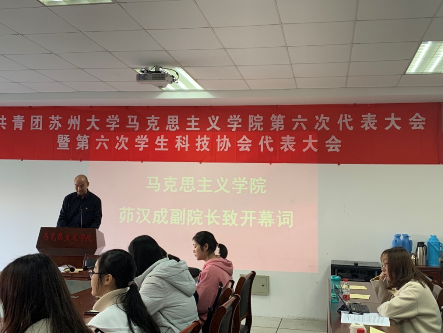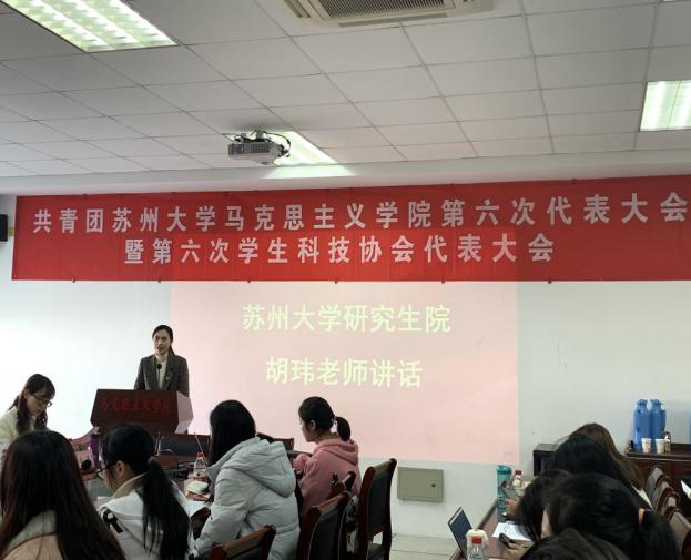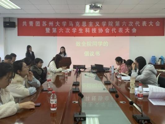 2020年11月30日,共青团苏州大学马克思主义学院第六次代表大会暨第六次学生科技协会代表大会在苏州大学独墅湖校区606#6418顺利举行。苏州大学马克思主义学院副院长茆汉成、研究生院就业指导科科长胡玮、政治与公共管理学院团委书记单杰、音乐学院团委书记于存洋、兄弟学院(部)社团学生代表应邀出席本次会议。本次会议由马克思主义学院组织,院团委、科技协会承办,由马克思主义学院研究生辅导员金鑫和2020级硕士研究生李谦主持。