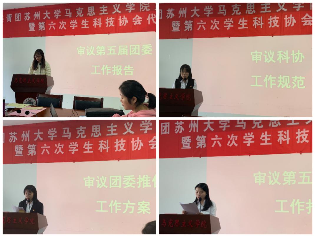 苏州大学马克思主义学院第六次团代会、第六次科代会的召开使马院学子站在一个新的历史起点上,号召马院同学书写团组织的新篇章,在新一届委员们的带领下和全院同学的大力支持下,马院学生工作必将迎来崭新未来。