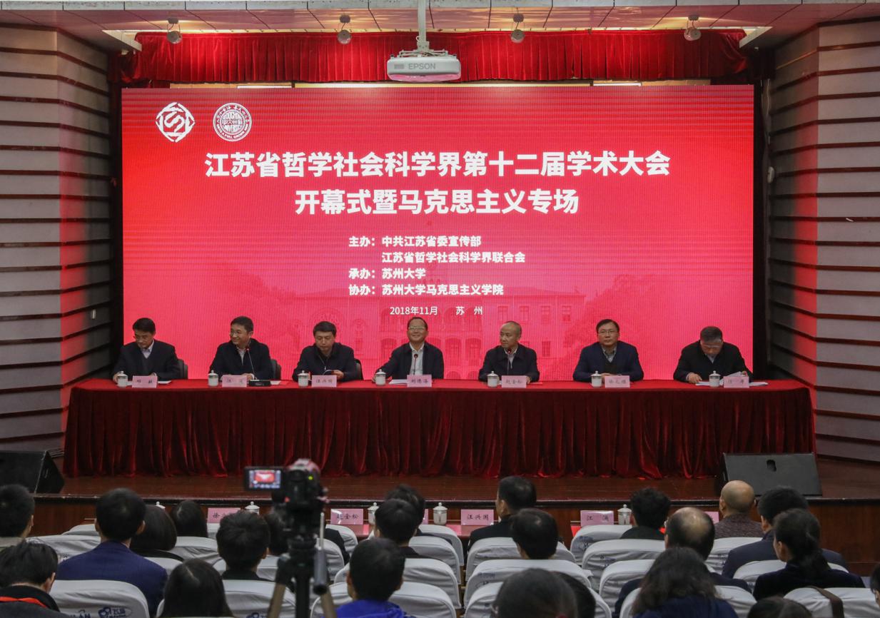 江苏省委常委、宣传部部长王燕文发表书面讲话。江苏省委宣传部部务委员赵金松,江苏省社科联党组书记、常务副主席刘德海,江苏省社科联党组副书记、副主席汪兴国,江苏省社科联党组成员、副主席徐之顺,江苏省社科联兼职副主席、原苏州大学正校级调研员任平,江苏省委宣传部理论处处长尚庆飞,江苏省委党校科研处处长吴宏,江苏省教育厅社政处处长王伟,我校党委书记江涌、党委副书记邓敏等领导出席大会。大会开幕式由刘德海主持。江苏省内110多位专家学者围绕“开辟当代中国马克思主义、21世纪马克思主义新境界”的大会主题展开交流研讨。