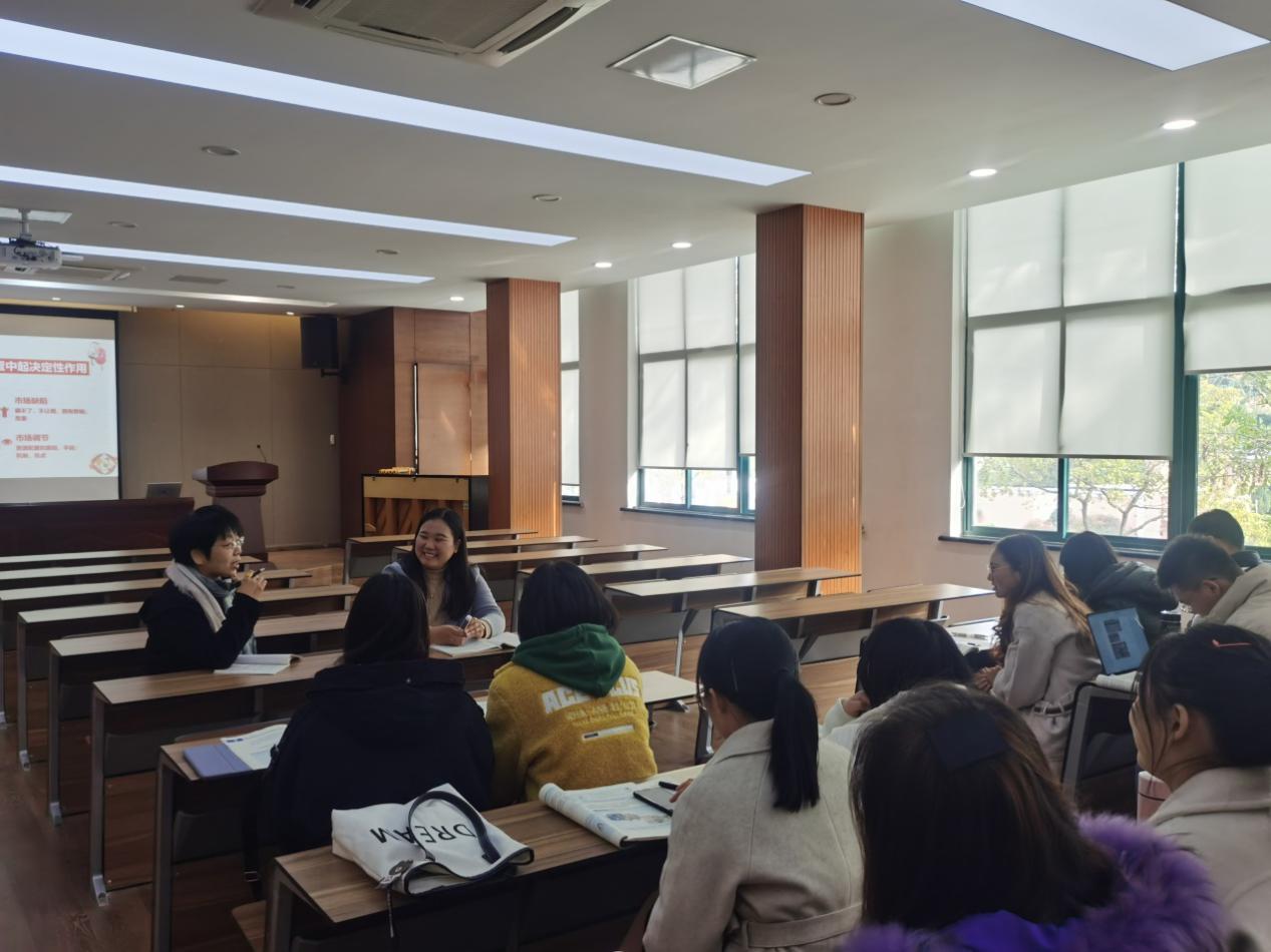 在反思交流环节,浦香老师根据同学们的提问给出不同角度的指导。一是在备课过程中,同学们既要注重参考同行优秀教师的备课思路,又要提高自身捕捉当前社会时政热点的敏锐度。要注重素材积累,提高备课能力,努力使教学内容既源于生活又高于生活。二是在将来的求职过程中,同学们要充分了解初高中教材知识的逻辑结构,增强对教材的驾驭能力和对知识点的思考能力,结合思政学科综合性、时代性的特点,对于同一案例从多角度进行分析,在追求良好课堂效果的同时,展现个人魅力。