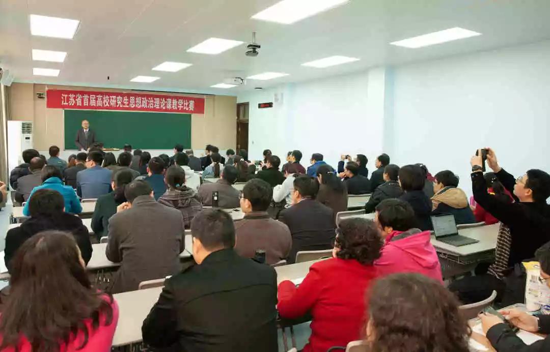 为了加强和改进研究生思想政治理论课教育教学工作,搭建研究生思想政治理论课教学交流平台,提高广大教师教育教学水平,由江苏省高校思想政治理论课教学指导委员会主办,南京中医药大学承办,南京财经大学、南京农业大学、苏州大学协办的“江苏省首届高校研究生思想政治理论课教学比赛”于12月1日—2日在南京中医药大学举办。