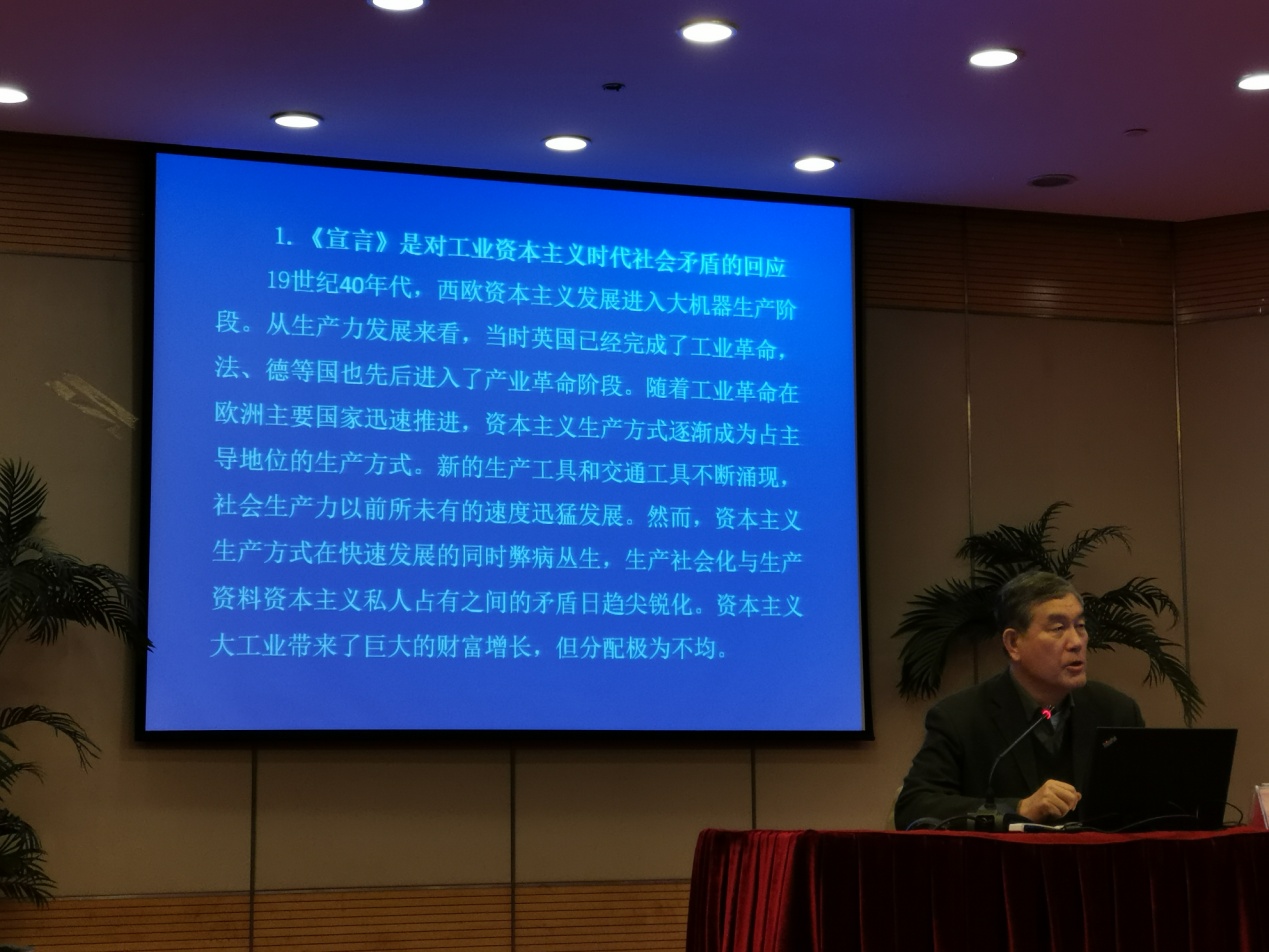 本次他给我们带来的报告是:《共产党宣言》及其当代启示。王局长与我们一起分享了《共产党宣言》产生的时代条件、写作过程等背景知识,讲解了《共产党宣言》诞生后在欧美各国的传播特别是在中国的翻译过程和传播历史。详细介绍了《共产党宣言》的唯物史观基本原理、阶级和阶级斗争的基本观点、“两个必然”的基本观点、无产阶级使命和无产阶级革命的基本观点、关于共产主义社会的基本设想、无产阶级政党的基本观点等六个方面的基本内容。报告紧密结合着当代世界和中国的实际,通篇贯穿着闪耀着习近平新时代中国特色社会主义思想。王局长还要求我们党员、广大师生要坚定“四个自信”,牢记共产党的宗旨和使命,自觉运用马克思主义的科学方法来分析、解决问题。王局长所强调的,建设中国特色社会主义要坚持和加强党的全面领导,把党建设得更加坚强有力;要坚持改革开放,顺应时代发展潮流,构建人类命运共同体等。这些重要论述对我们都很有启发。