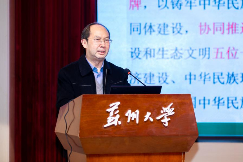 邓敏对各位领导、专家长期以来给予学校发展的关心支持表示感谢。他指出,苏州大学始终将铸牢中华民族共同体意识融入办学治校全过程,2023年获批的国家民委中华民族共同体研究培育基地,已成为深化民族教育创新实践的重要平台。邓敏强调,本次研讨会既是学习贯彻党的二十届四中全会精神的具体行动,更是推动马克思主义民族理论研究与人才培养深度融合的重要契机,期待通过高层次学术交流为民族复兴凝聚精神力量。