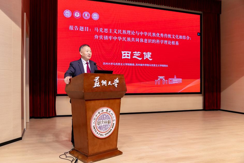 为进一步深化阐释并丰富发展铸牢中华民族共同体意识的重大理论体系,深入学习领会自党的十八大以来,以习近平同志为核心的党中央关于铸牢中华民族共同体意识的重要理论创新和战略部署,系统梳理新时代党的民族工作理论与实践的创新发展,推动这一凝聚民族复兴伟力的时代课题研究深入开展。11月9日,铸牢中华民族共同体意识的理论创新和实践探索研讨会在苏州大学天赐庄校区红楼学术报告厅隆重召开。会议由苏州大学主办,国家民委中华民族共同体研究培育基地(苏州大学)、江苏省习近平新时代中国特色社会主义思想研究中心苏州大学基地、苏州大学人文社会科学处、苏州大学马克思主义学院联合承办,《南京社会科学》编辑部、《学海》编辑部、《苏州大学学报(哲学社会科学版)》编辑部、《南通大学学报》编辑部协办。