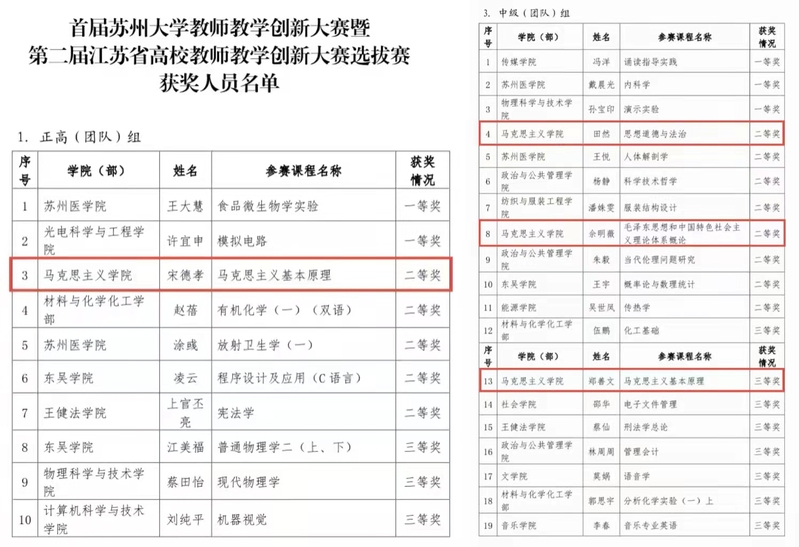 马克思主义学院在首届苏州大学教师教学创新大赛暨第二届江苏省高校教师教学创新大赛选拔赛中喜获佳绩