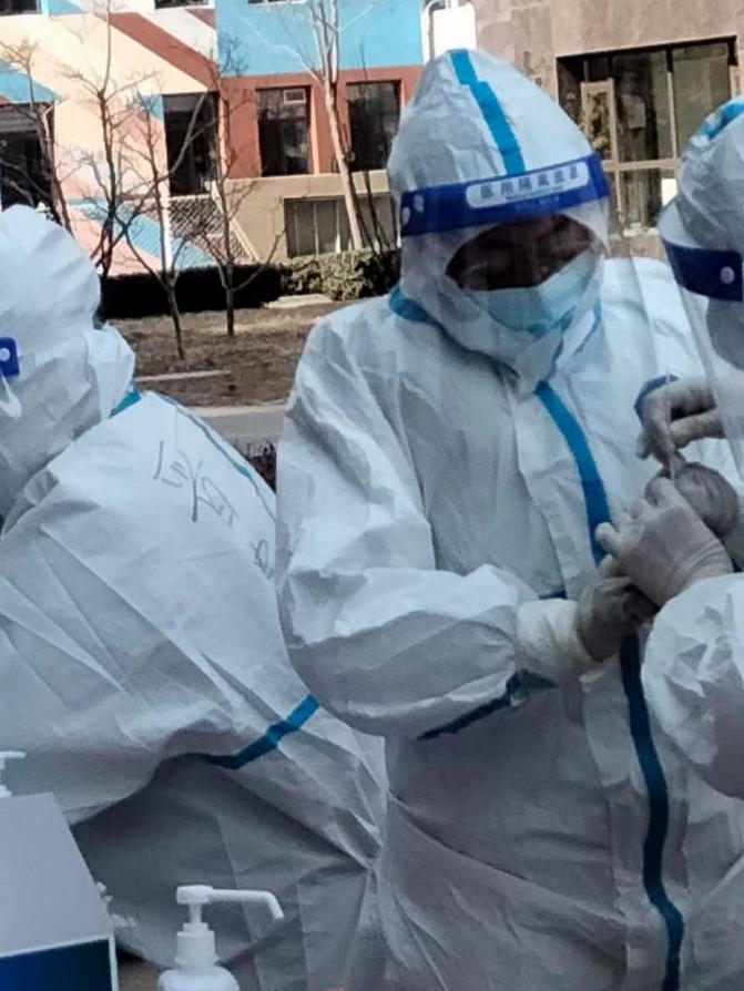 在山西省,2021级硕士研究生申慧颖积极加入家乡晋中市太谷县西苑社区的疫情防控工作,成为抗疫青年中的一员。申慧颖同学每日穿上防护服,为前来进行核酸检测的居民登记个人信息,协助负责核酸检测的医生,准备进行咽拭子需要的棉签、分装试管以及进行密封工作。在志愿服务的过程中,申慧颖始终发挥青年学生的作用,一丝不苟、认真负责地完成志愿工作,得到了社区与居民的一致好评。她认为:“在关键时刻,亮身份,领任务,见行动,是一个党员的基本素养。”
