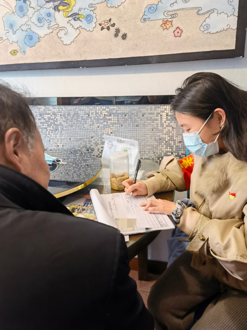 (图为陆美辰在进行社区楼道居民信息登记)