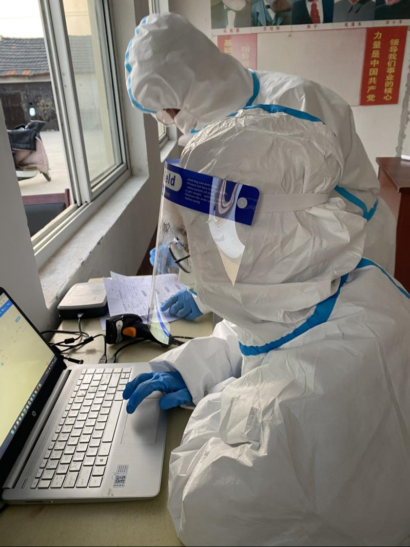 (图为李云玲进行核酸检测信息录入工作)