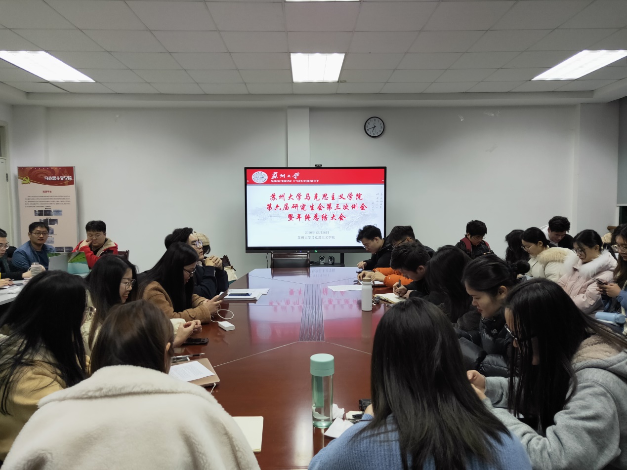 2020年12月28日,苏州大学马克思主义学院第六届研究生会于独墅湖校区一期606#6420会议室顺利召开了2020年第三次例会暨年终总结大会。马克思主义学院第六届研究生会全体成员参加了本次会议,会议由研究生会主席林心杰主持。