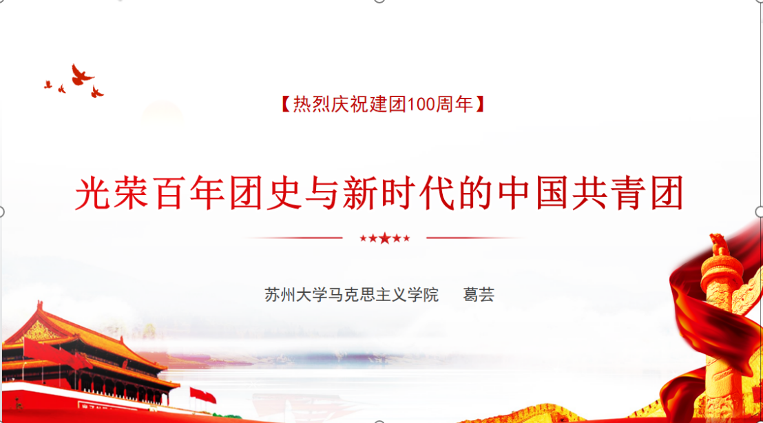 3月23日,苏州大学马克思主义学院、功能纳米与软物质学院联合举办“百年团史青年学”主题在线学习活动,活动由马克思主义学院研究生会、功能纳米与软物质研究院研究生会共同主办。本次活动由功能纳米与软物质研究院研究生任政主持。