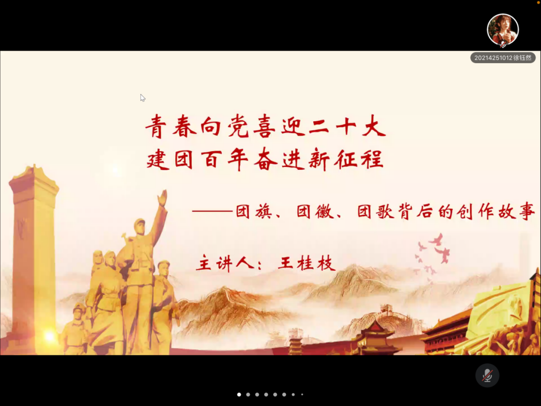 马克思主义学院学生党总支组织委员王桂枝以“青春向党喜迎党的二十大,建团百年奋进新征程——团旗、团徽、团歌背后的创作故事”为主题进行宣讲。首先,她简要地介绍了中国共青团的百年发展历程;其次,她生动地讲述了团旗、团歌、团徽背后的创作故事,并强调了使用团旗的注意事项;最后,她激励青年一代要勇做走在时代前列的奋进者、开拓者、奉献者,担负起历史重任,不断从新时代赋予的使命中寻找方向,在民族复兴的征程中贡献力量。