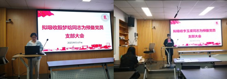 11月9日,苏州大学马克思主义学院研究生第一党支部于天赐庄校区东教楼516教室召开关于接收殷梦晗同志和李玉柔同志为预备党员的支部大会。会议由支部书记赵薇婧同志主持。
