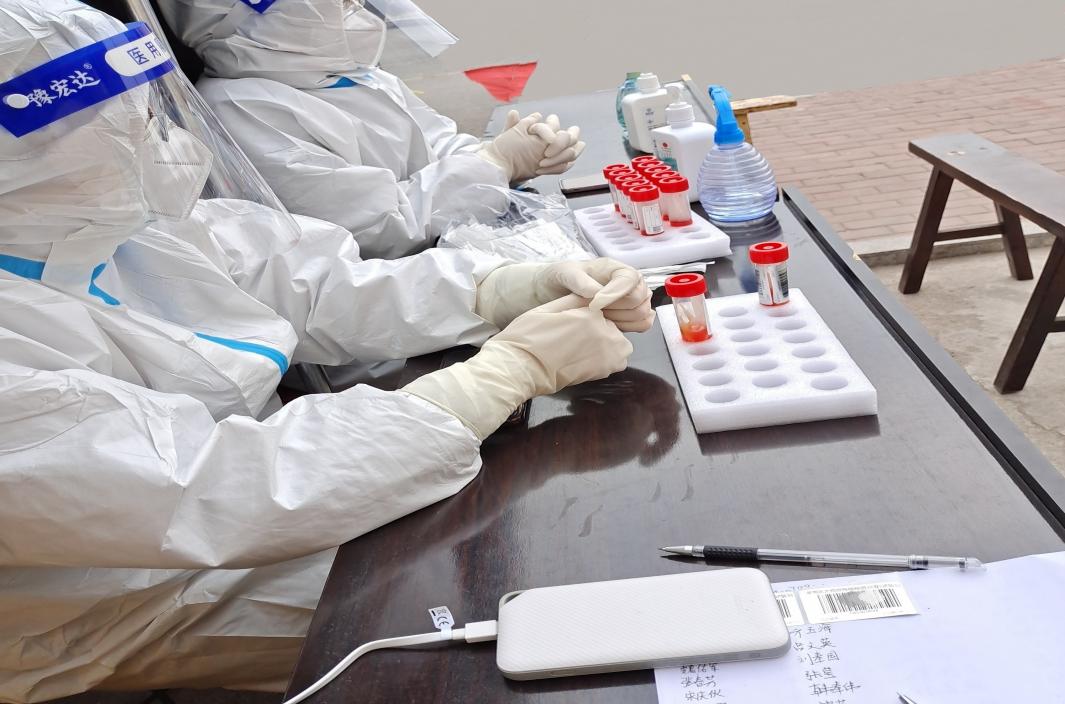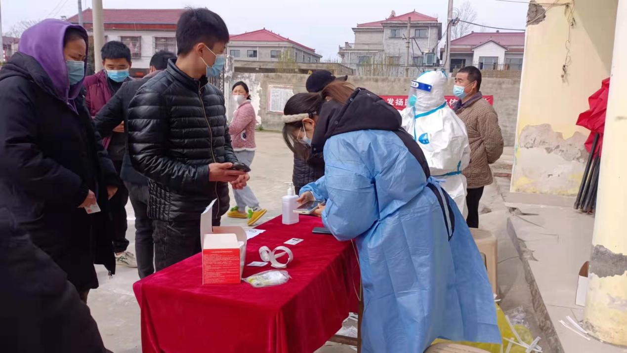 (图为王林宇正在采集居民核酸信息)