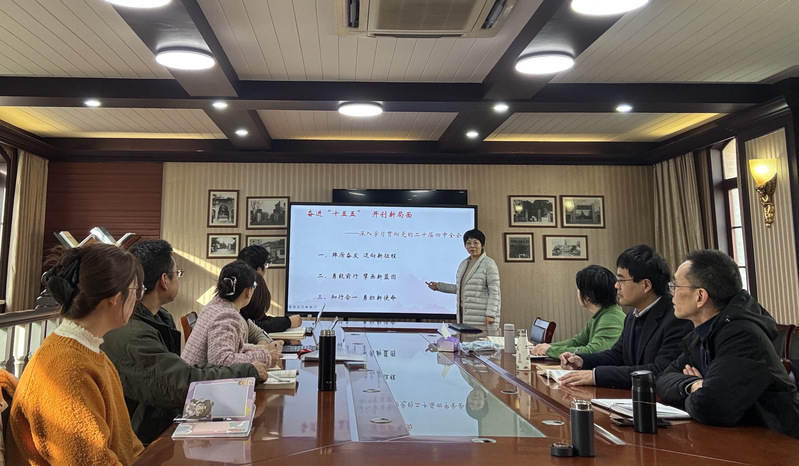 会议邀请学院副院长朱蓉蓉作“奋进‘十五五’开创新局面——深入学习贯彻党的二十届四中全会精神”专题讲座。朱蓉蓉从“砥砺奋发、迈向新征程”“勇毅前行、擘画新蓝图”“知行合一、勇担新使命”三个方面,结合新时代伟大成就生动案例,运用翔实数据、通过纵横比较,详细生动讲述《中共中央关于制定国民经济和社会发展第十五个五年规划的建议》的历史背景、基本内容、遵循原则和实践路径。