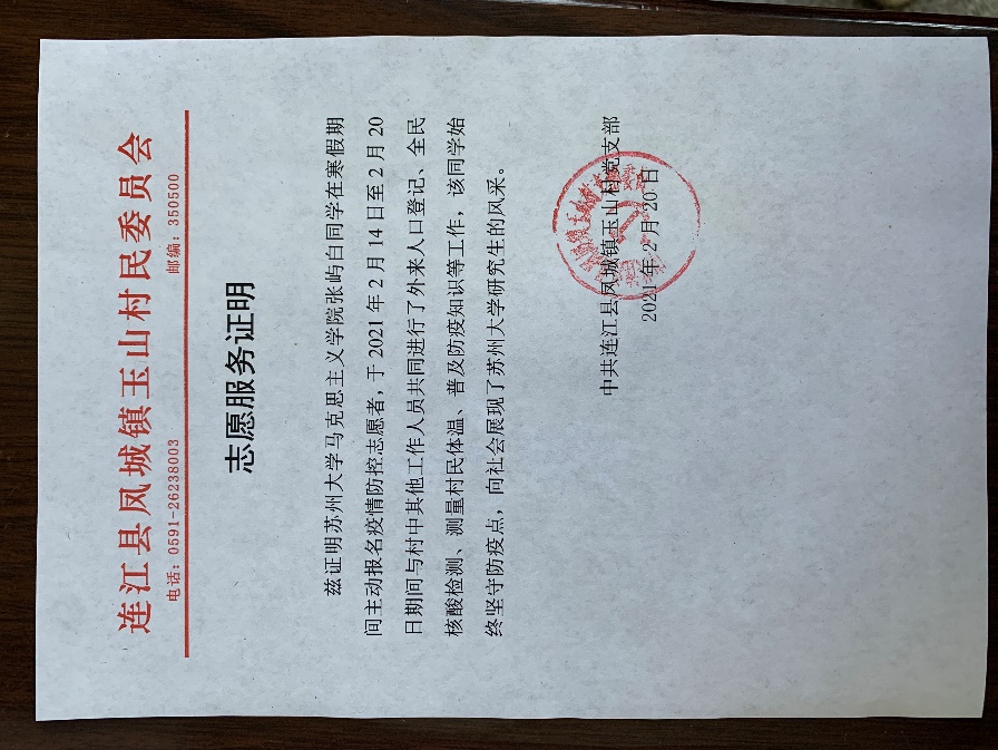 2021年寒假期间,苏州大学马克思主义学院的研究生们积极响应学校的号召,返乡积极参与家乡疫情防控志愿服务工作。