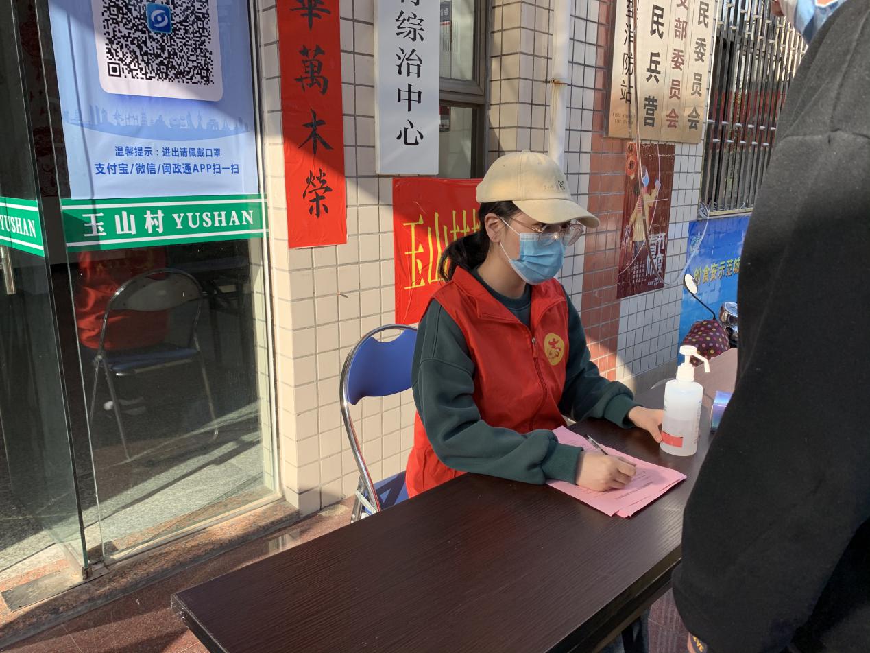 在福建省福州市连江县玉山村,苏州大学马克思主义学院2020级硕士研究生张屿白同学寒假返乡后,积极协助家乡疫情防控工作人员进行外来人口登记、全民核酸检测、测量村民体温、普及防疫知识等工作。张屿白在去年寒假期间新冠疫情最严峻的时刻曾主动前往玉山村抗疫一线参加该村抗击新冠肺炎疫情防控志愿服务,所以她对家乡的人员流向和道路卡口十分熟悉,面对玉山村所处地段岔路口多、道路情况复杂,加之春节期间人口大量流动,她每日坚守防疫点能够对来往人员进行密而不疏地排查和指引,为家乡的平安与民众的健康贡献了自己的青春力量。两年来的防疫志愿者工作让张屿白同学感触良多,她说;“作为一名青年志愿者,非常荣幸见证了国家抗疫工作的积极发展。习近平总书记曾说:‘一个民族之所以伟大,根本就在于在任何困难和风险面前从来不放弃、不退缩、不止步,百折不挠为自己的前途命运而奋斗。’中华民族是伟大的民族,我相信,只要万众一心,共同阻击,疫情很快就会彻底过去,黎明终将破晓!”