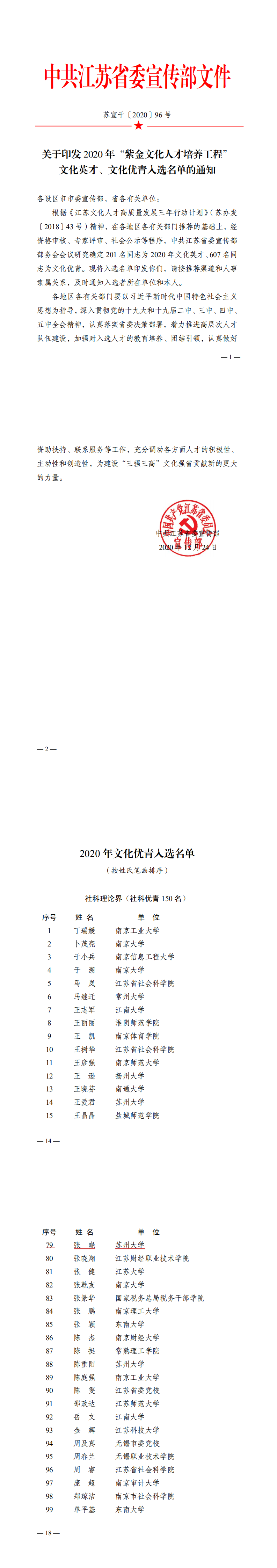 苏州大学马克思主义学院张晓副教授入选省委宣传部2020年“紫金文化人才培养工程”文化优青名单