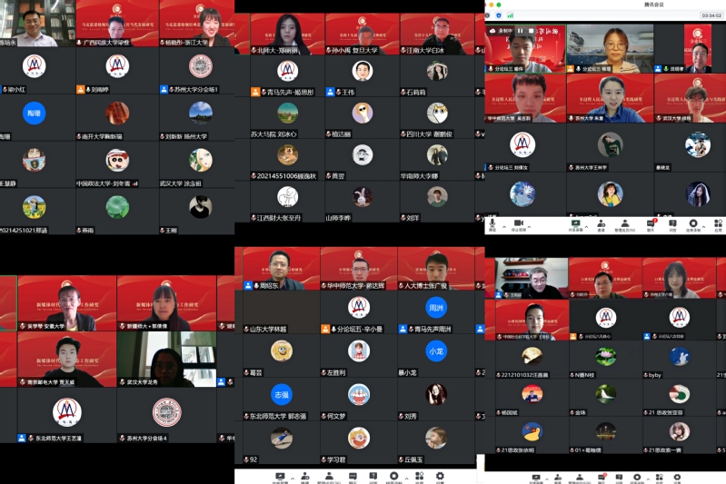 六个分论坛按预定议程分别召开并同步线上直播,主题分别为“马克思恩格斯经典思想及其当代发展研究”“党的十九届六中全会精神研究”“全过程人民民主的理论与实践”“新媒体时代意识形态工作研究”“乡村振兴与共同富裕研究”“21世纪国外马克思主义理论研究”。各分论坛议程共分为两个阶段,第一阶段由分论坛专家进行主旨报告,第二阶段先由获奖论文代表研讨发言,再由专家代表进行学术点评。
