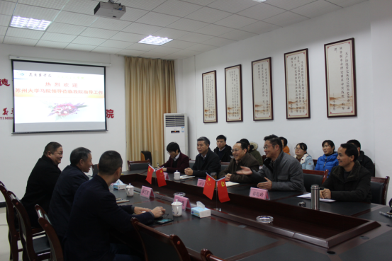 田宗远副书记首先代表遵义医学院对苏州大学马克思主义学院各位的到来表示热烈欢迎,并介绍了本校的历史沿革、马克思主义理论学科建设基本情况以及科学研究等方面的工作,高度评价了苏大熊思东校长遵义之行达成的合作共识。田宗远副书记说,近年来,苏大马院在人才培养、学科建设、科学研究以及社会服务等方面取得了显著成绩。希望两校的马克思主义学院在教育教学、师资队伍建设、人才培养、社会服务等方面深入交流,加强合作,互相学习借鉴对方的成功经验,推动马克思主义学院各项工作进一步提升。