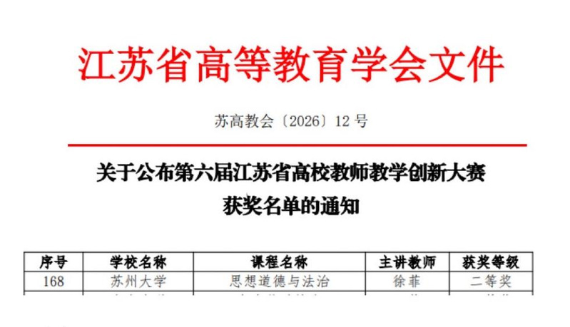 喜报|苏州大学马克思主义学院徐菲老师在第六届江苏省高校教师教学创新大赛中斩获佳绩